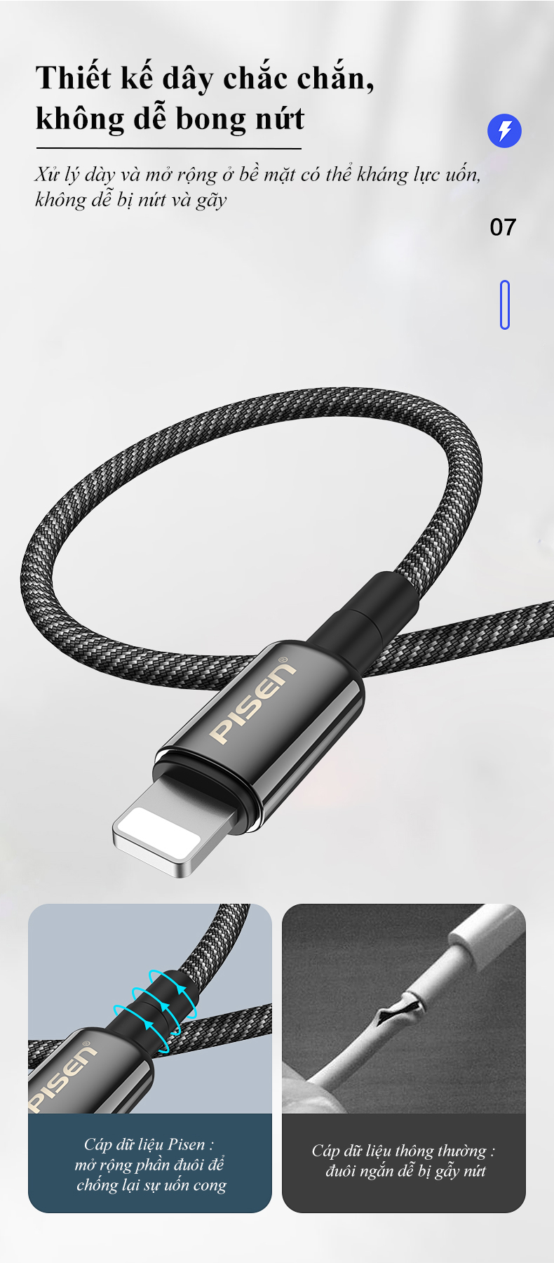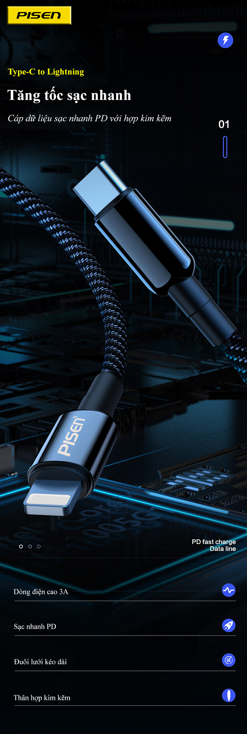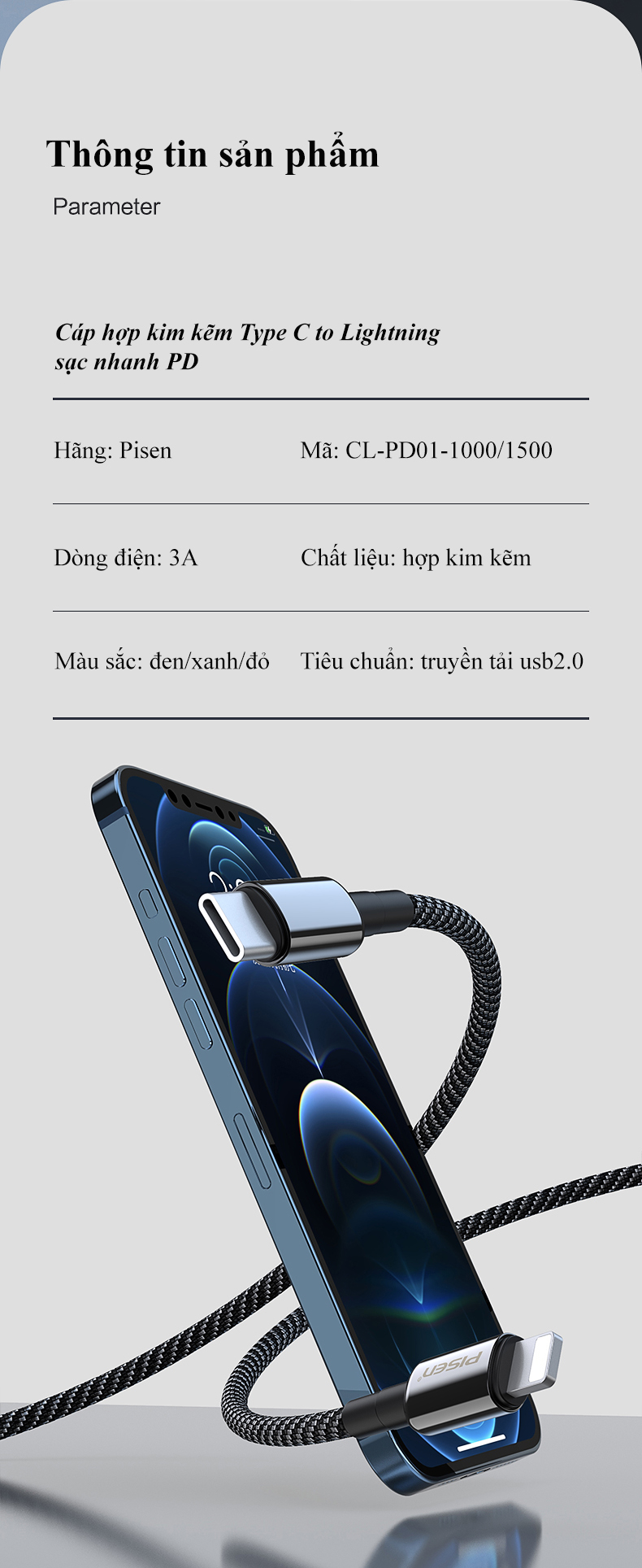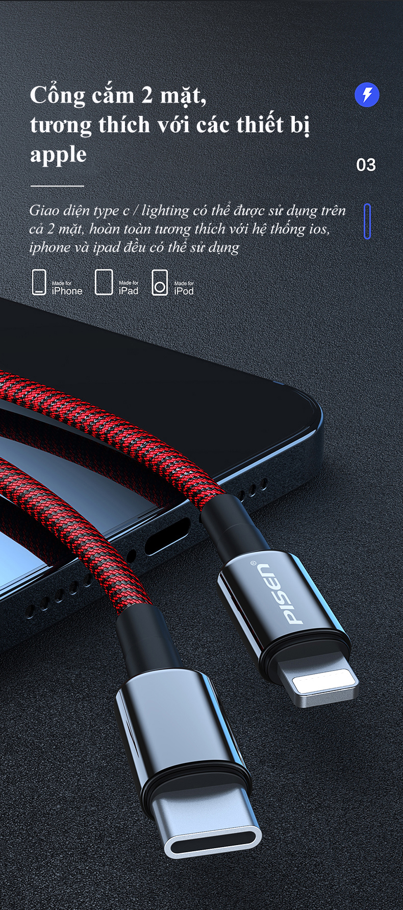 Cáp sạc Pisen Type to Lightning PD 20W - 3A